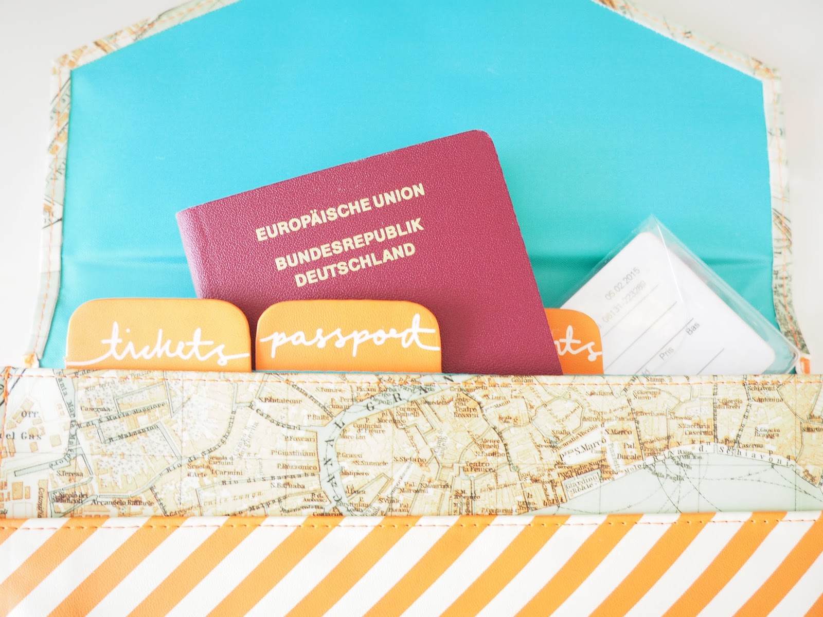 Also habe ich mich auf die Suche nach  einer Optimierungsmöglichkeit gesucht. Es gibt ja alles Mögliche: Reisepasshüllen, Lederimitatbüchlein … aber ich wollte etwas Praktisches und gleichzeitig Auffälliges mit ausreichend Platz.