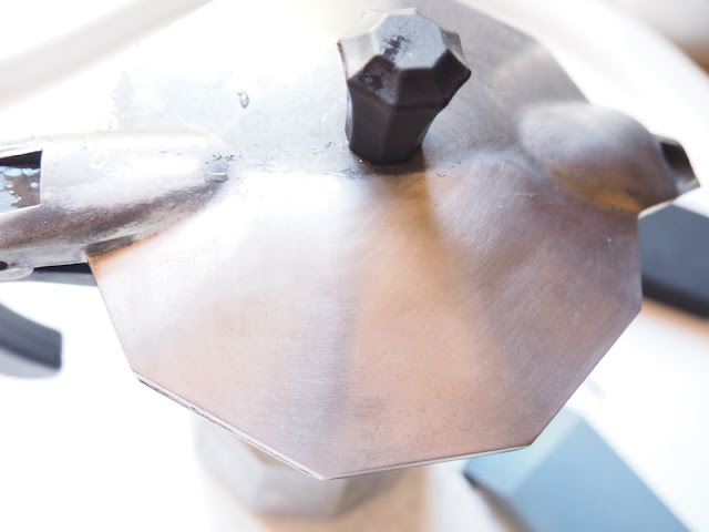 Mein Kaffeezubereiter. Also, nun ja – keine Ahnung, wie er so schmuddelig und schwarz werden konnte. Also, das perfekte Testobjekt.