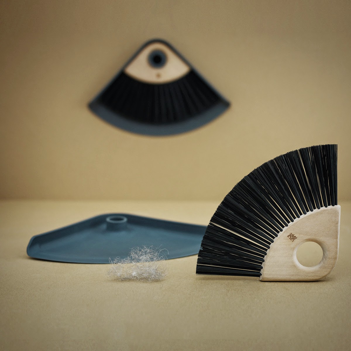 Bisher gehörte auch die Kehrschaufel + kleinem Besen dazu. Meist im Baumarkt meines Vertrauens erworben, waren sie nie eine Ausgeburt an Schönheit: Dottergelber Plastikspritzguß mit beige-grauen Kunststoffborsten. Nichts, was man gerne herzeigt. Es platzsparend verstauen, klappte aber auch nie so recht.