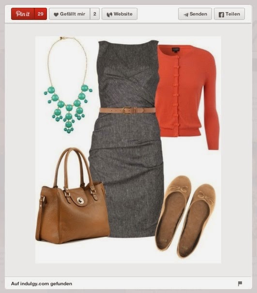 Ein graues Businesskleid habe ich auch – coole Idee (vor allem mit der türkisfarbenen Kette. Was mich aber wirklich begeistert hat, war die Kombination mit dem Blumenkleid. Ein ganz ähnliches habe ich auch und ich bin vorher wirklich noch nicht auf die Idee gekommen, beides miteinander zu kombinieren. Nur den Hut würde ich im Büro auslassen 😉 Das sind jetzt nur vier Kombinationen, die mir gefallen haben. Ausgespuckt hat Pinterest hunderte mit ganz unterschiedlichen Outfits.